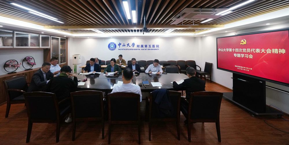 會上,苗偉書記帶領與會人員學習中山大學第十四次黨代會報告。他指出,過去五年,學校事業實現的跨越式發展,離不開學校黨委始終立足中華民族偉大復興戰略全局和百年未有之大變局,團結帶領全校師生心懷“國之大者”,堅持走高質量內涵式發展道路。全體中大人上下齊心,凝聚起了建設中國特色、世界一流大學的磅礴力量。未來五年是加快建設中國特色、世界一流大學的關鍵時期。他強調,醫院全體教職工要切實增強政治自覺、思想自覺和行動自覺,把深入貫徹黨的二十大精神與落實學校第十四次黨代會精神緊密結合起來,心懷“國之大者”,堅持以人民為中心,服務健康中國戰略,持續提升落實立德樹人根本任務的能力,切實推進醫教研協同發展,團結奮斗、勇毅前行,把落實黨代會部署要求轉化為具體行動和務實舉措,為共同譜寫百年中大新篇章貢獻五院力量。