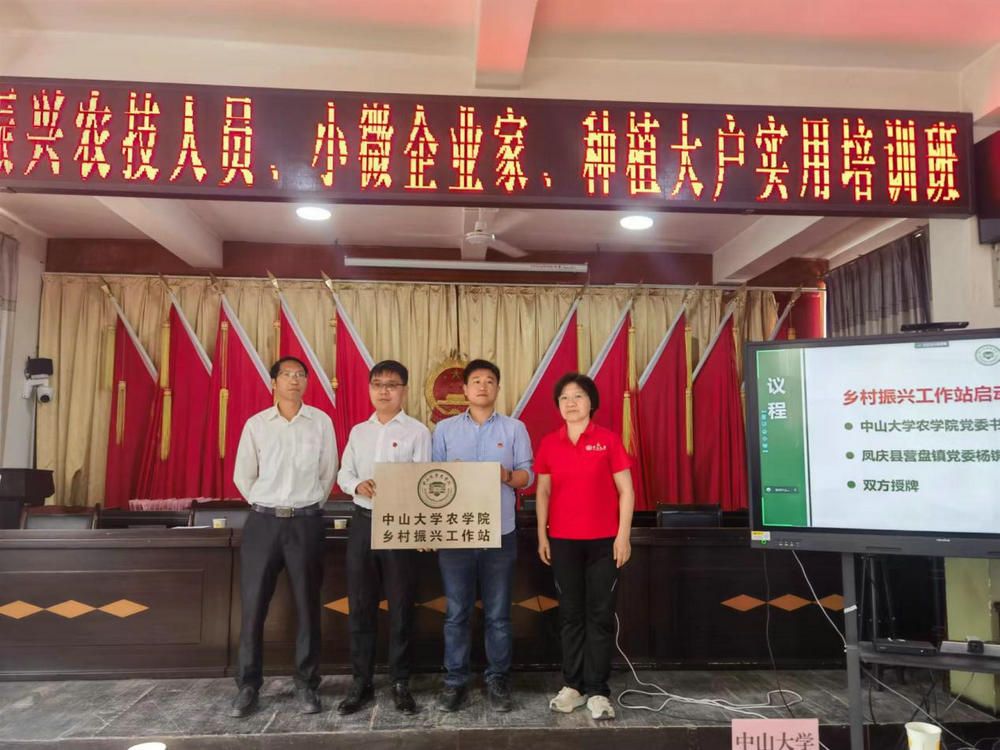 鄉村振興工作站啟動儀式由羅春軍副鎮長主持。程月華書記表示,農學院會根據營盤鎮的發展需求,以黨支部結對共建為依托,舉全院之力、攜必要的外援,努力為當地的鄉村振興添智助力。營盤鎮黨委書記楊鐫益介紹了營盤鎮的基本情況,表達了全鎮上下十分珍惜本次結對共建的機會,將積極對接、持續努力,在中山大學農學院的帶動下使黨組織更加堅強有力,推動營盤鎮各項事業發展邁上一個新臺階。接著,雙方舉行了鄉村振興工作站授牌儀式。
