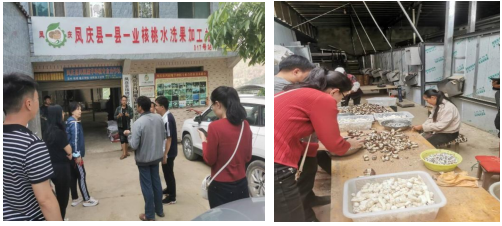 4月25日下午,農學院一行先后來到鳳慶縣一縣一業核桃水洗果加工站和華林核桃種植專業合作社,與種植大戶們座談了解當地核桃產業發展現狀,以及林下種植食用菌情況。熊新武副研究員和老師們針對經營中存在的問題,提出了加強修枝、林下種植、標準化生產、打造品牌等建議。