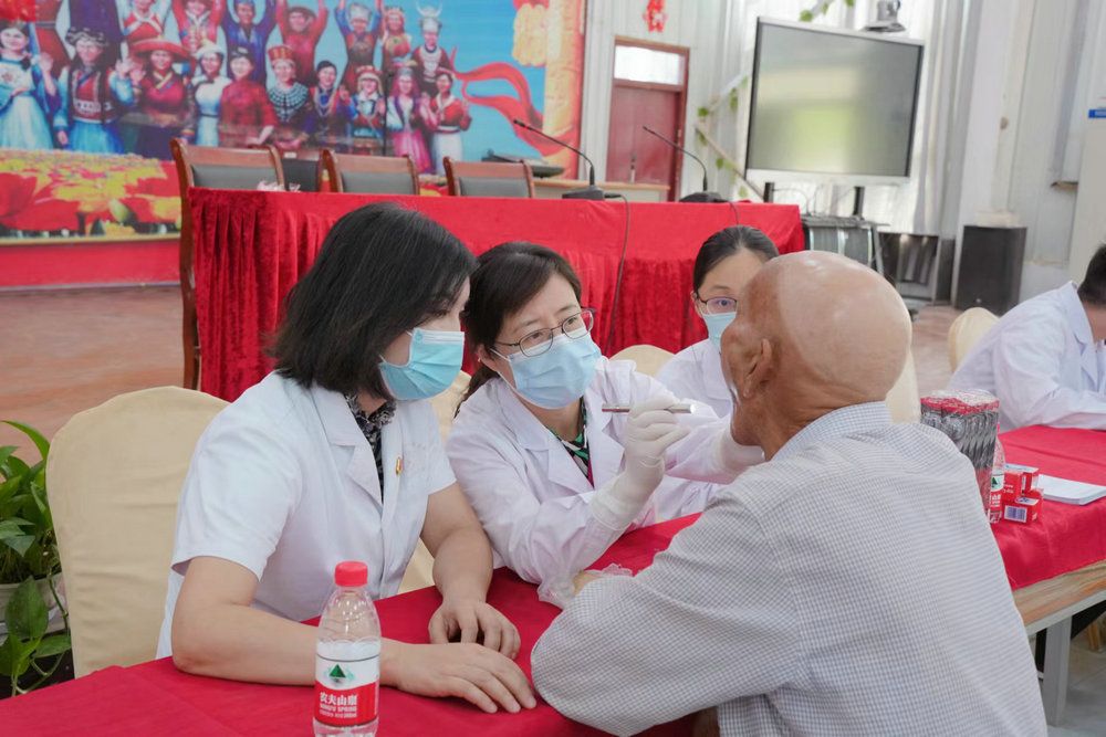 服務隊與喀什地區第一人民醫院口腔科醫生一道,為岳普湖縣社區的老年居民進行口腔健康檢查,送上誠摯的關懷和實用的口腔保健品,讓他們感受到來自光華青年的專業和溫暖。