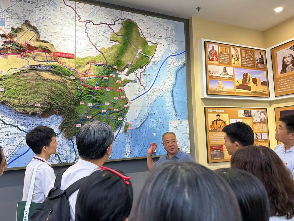 義診活動后,中山大學黨委常委、副校長兼喀什大學黨委常委、副校長楊清華帶領隊員參觀喀什大學思政教育基地,介紹了新疆在黨的領導下取得的發展成就。隊員們真切感受到中山大學援疆干部的拳拳赤子心和殷殷家國情。