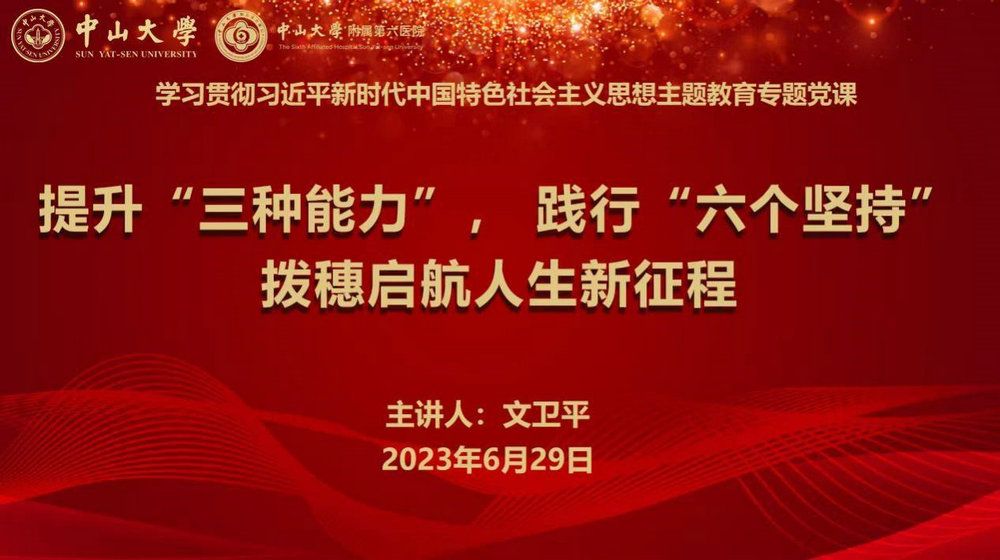 中大新聞網訊(通訊員樂虞瑩、戴希安、童秋婷、唐小雨)以學鑄魂、以學增智、以學正風、以學促干,為真正把主題教育成效轉化為推動發展的強大動力,近日,附屬第六醫院黨委書記李漢榮,黨委副書記、院長文衛平帶頭講授主題教育專題黨課,高標準高質量、持續推動學習貫徹習近平新時代中國特色社會主義思想主題教育走深走實。