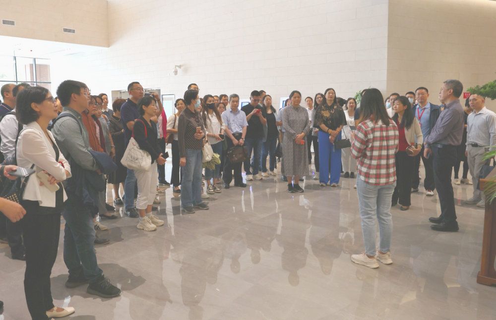 調研座談會后,教代會代表、工會干部一行赴東莞大朗鎮參觀了“中大譜儀”。物理學院王猛教授在現場進行了介紹。中大譜儀是由我校與中國散裂中子源合作建設的高能直接幾何非彈性中子散射飛行時間譜儀。中大譜儀運行后,面向國內外研究人員開放使用,服務國家戰略需求,支撐粵港澳大灣區科學研究,培養國家需要的專業人才。