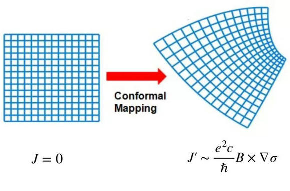 一開始三位同學對這個問題都感到比較陌生,對一些相關的知識也不夠了解,但在苗榮欣副教授的指導下,通過學習一些初級的廣義相對論和規范引力對偶的基礎知識以及和老師的積極交流,課題小組的同學最終推導出了反常電流的一般形式。主要結果如下圖所示: 其左圖為有背景磁場的平坦時空,其電流為零。右圖為共形變換后新的時空。由于量子反常,新時空中的電流不再為零,而是正比于磁場和共形因子的梯度。