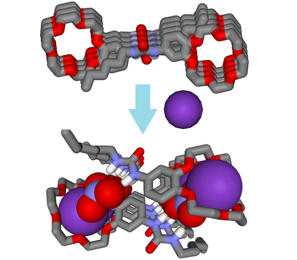 自然界存在許多性能優(yōu)異的跨膜蛋白通道可以高速度和高選擇性使脂質(zhì)雙層上的陽離子進行傳輸。受自然界的啟發(fā),科學(xué)家們開發(fā)了模擬人工離子通道的簡化模型,以研究跨膜傳輸?shù)尿?qū)動因素及其在藥物、生物材料開發(fā)方面的潛在應(yīng)用。其中自然鉀離子通道蛋白除了鉀離子外不允許其他陽離子通過,呈現(xiàn)高的運載鉀離子速率和選擇性。這種高度選擇性是自然通道蛋白運輸效果的重要決定因素,因此,吸引了很多化學(xué)家的研究興趣。在已經(jīng)報道的研究結(jié)果中,很多報道的人工鉀離子通道并未重視K+/Na+的高選擇性通過問題。通常來說,金屬陽離子選擇性是由陽離子脫水損耗的能量與離子得到補償?shù)哪芰勘戎禌Q定的。