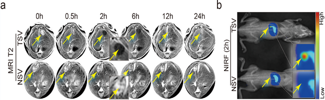 納米藥物的MRI(a)-NIRF(b)雙模態活體顯像