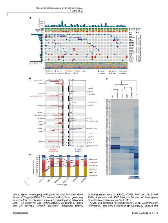 在本研究中,研究人員首次構建了完整的食道小細胞癌基因組圖譜,發現了8個高頻突變基因,包括5個在癌癥中研究的比較廣泛的基因TP53、RB1、NOTCH 1、FAT1和FBXW7;以及3個未在腫瘤中報道過的高頻突變基因PDE3A、PTPRM和CBLN2。
