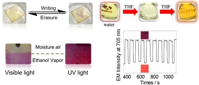 發光變色材料指在受到外界信號如光、電、機械摩擦、揮發性有機物(VOC)等刺激后,發光及顏色發生改變的一種材料。由于這類材料對外界刺激具有獨特的感應和識別能力,因此在光電信息轉換、環境監控、化學/生物傳感等諸多領域具有廣闊的應用前景。由于過渡金屬配合物具有很好的光熱穩定性、豐富的激發態能級、易于合成并且其發光能量易于調控等特點,使其成為發光變色材料重要的研究對象。