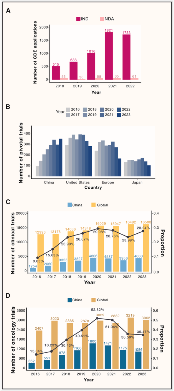 圖1.中國創新藥申請和臨床試驗現狀