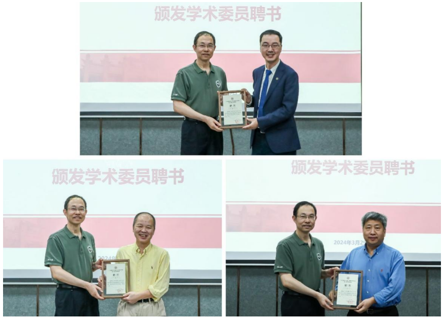 會(huì)上,鄭躍副校長(zhǎng)和學(xué)術(shù)委員會(huì)主任汪衛(wèi)華院士分別為學(xué)術(shù)委員頒發(fā)了聘書(shū)。