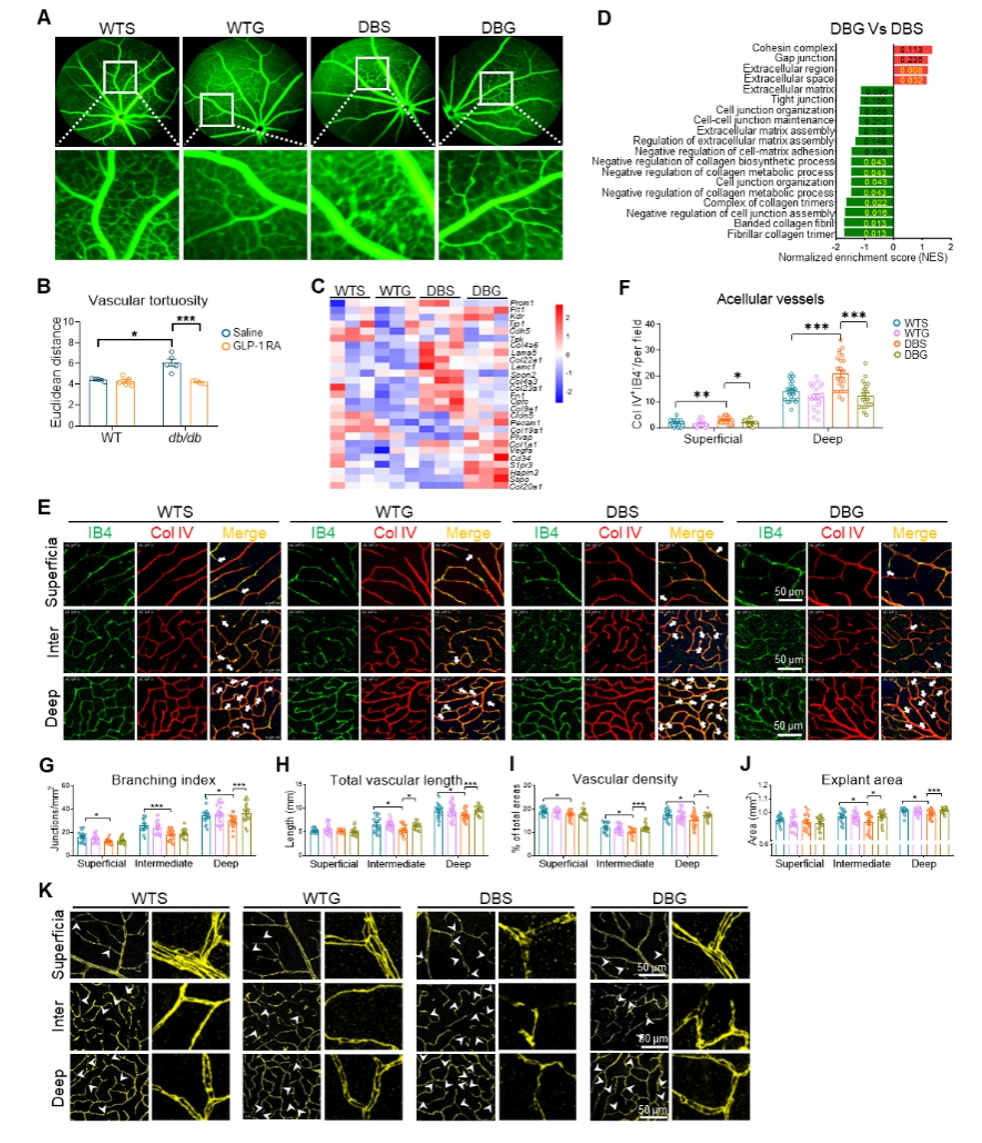 圖2. GLP-1 RAs改善糖尿病視網膜血管卷曲度和緊密連接