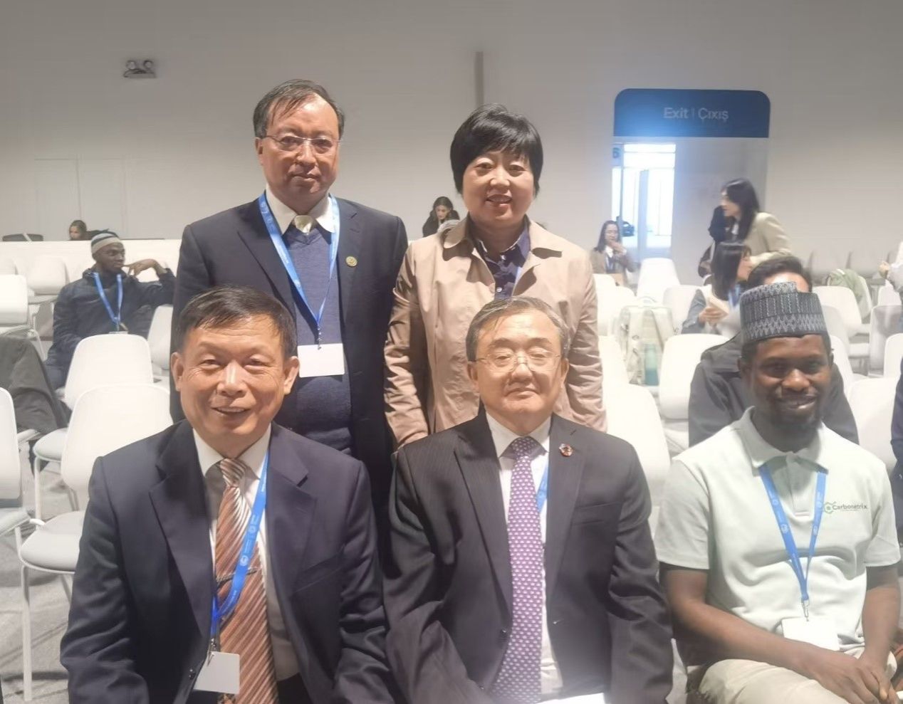 董文杰教授(后排左一)和中國國家氣候事務特使劉振民先生(前排中)在會議現場