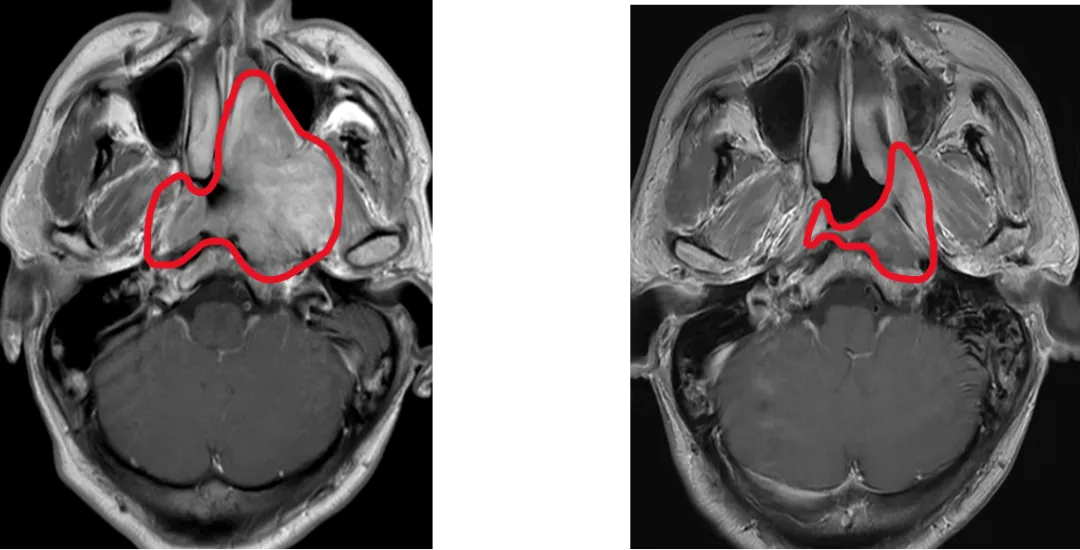 鼻咽癌高發(fā)于中國(guó),新發(fā)病例占全球47%。放射治療是鼻咽癌的根治手段,但中晚期患者需要在放療前接受化療,放療前化療使90%患者腫瘤縮小,而既往國(guó)際指南推薦放療照射范圍仍需包括化療前腫瘤大小覆蓋的范圍,導(dǎo)致周圍正常組織(如內(nèi)耳、腮腺)接受高劑量輻射,引發(fā)聽力損傷、口干等不可逆副作用,嚴(yán)重影響患者生活質(zhì)量。