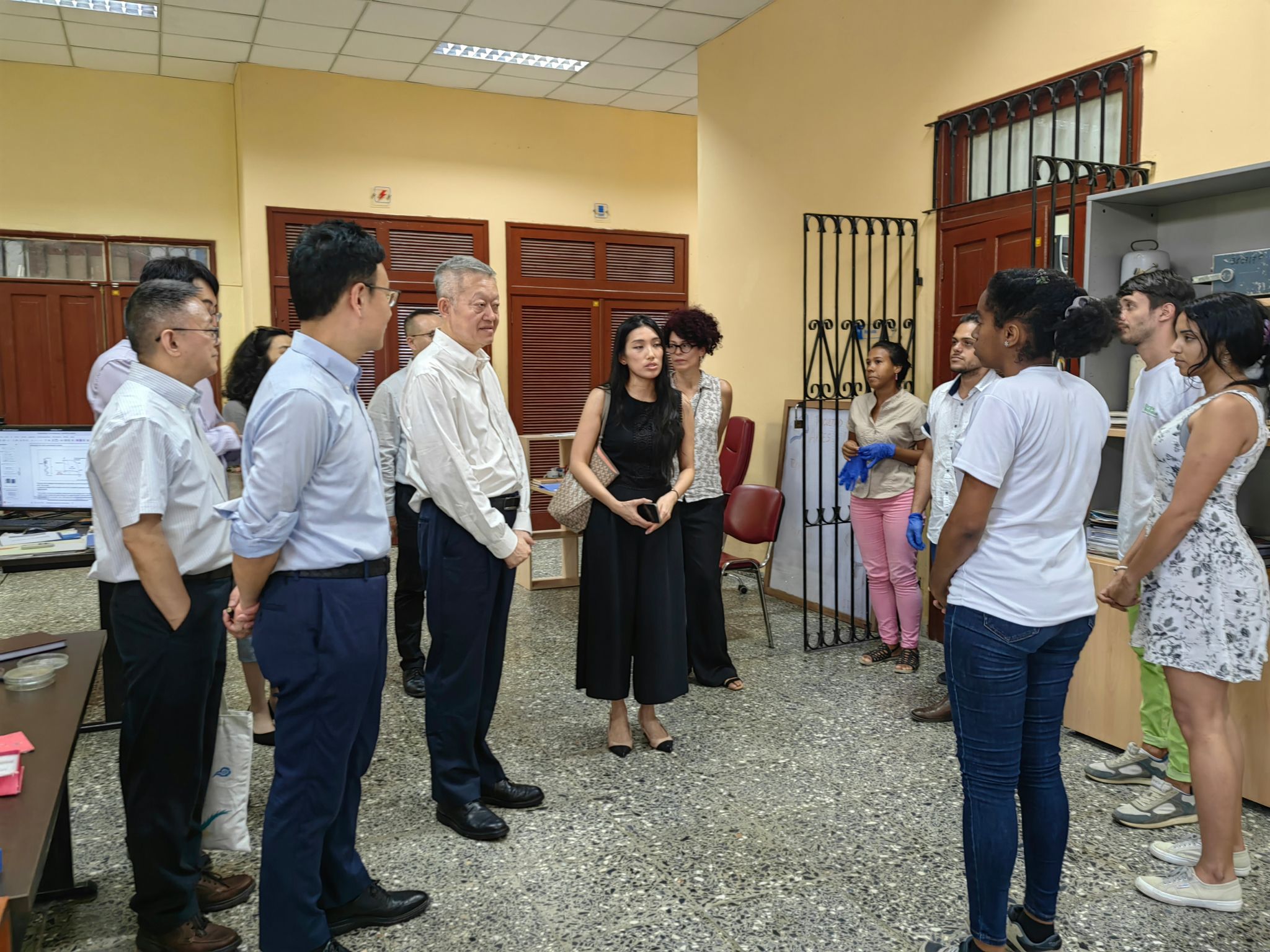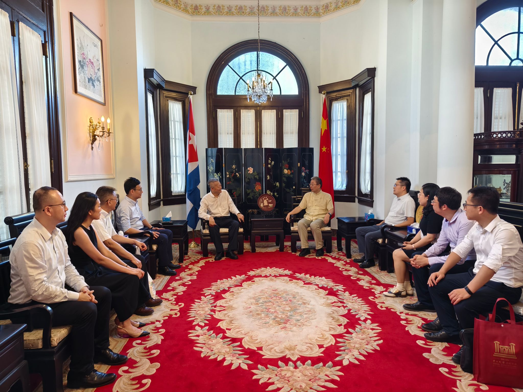 陳春聲書記一行在古巴期間還拜訪了中國駐古巴大使馬輝、公使銜參贊張步新和文化參贊韓立昕。陳春聲書記表示,中山大學將積極落實廣東省省長王偉中訪問古巴以及訪問哈瓦那大學時的工作指示,大力發展與古巴高校,尤其是哈瓦那大學的合作交流,積極拓展務實的學科合作,加強人員往來。馬輝大使表示,支持中山大學在生物醫藥、農業科技、教育文旅等領域推動與哈瓦那大學的合作,希望兩國高校能夠共同努力,共享發展機遇,更好造福兩地人民。