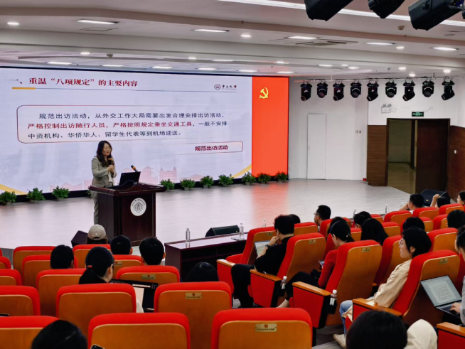 4月10日上午,中國語言文學系黨委、哲學系黨委、外國語學院黨委、博雅學院黨總支于中文堂105校友講學廳聯合舉辦深入貫徹中央八項規定精神學習教育宣講會。中國語言文學系黨委書記王琤、黨委副書記謝金華、黨委委員洪煒教授,哲學系黨委書記王麗霞、副書記陳瓊芝、副主任沈榆平副教授,外國語學院黨委書記張東蕙、副書記金鳳、黨委委員詹成教授,博雅學院黨總支書記曾佳妮等來自四個院系的150余名師生黨員參加了此次宣講會。