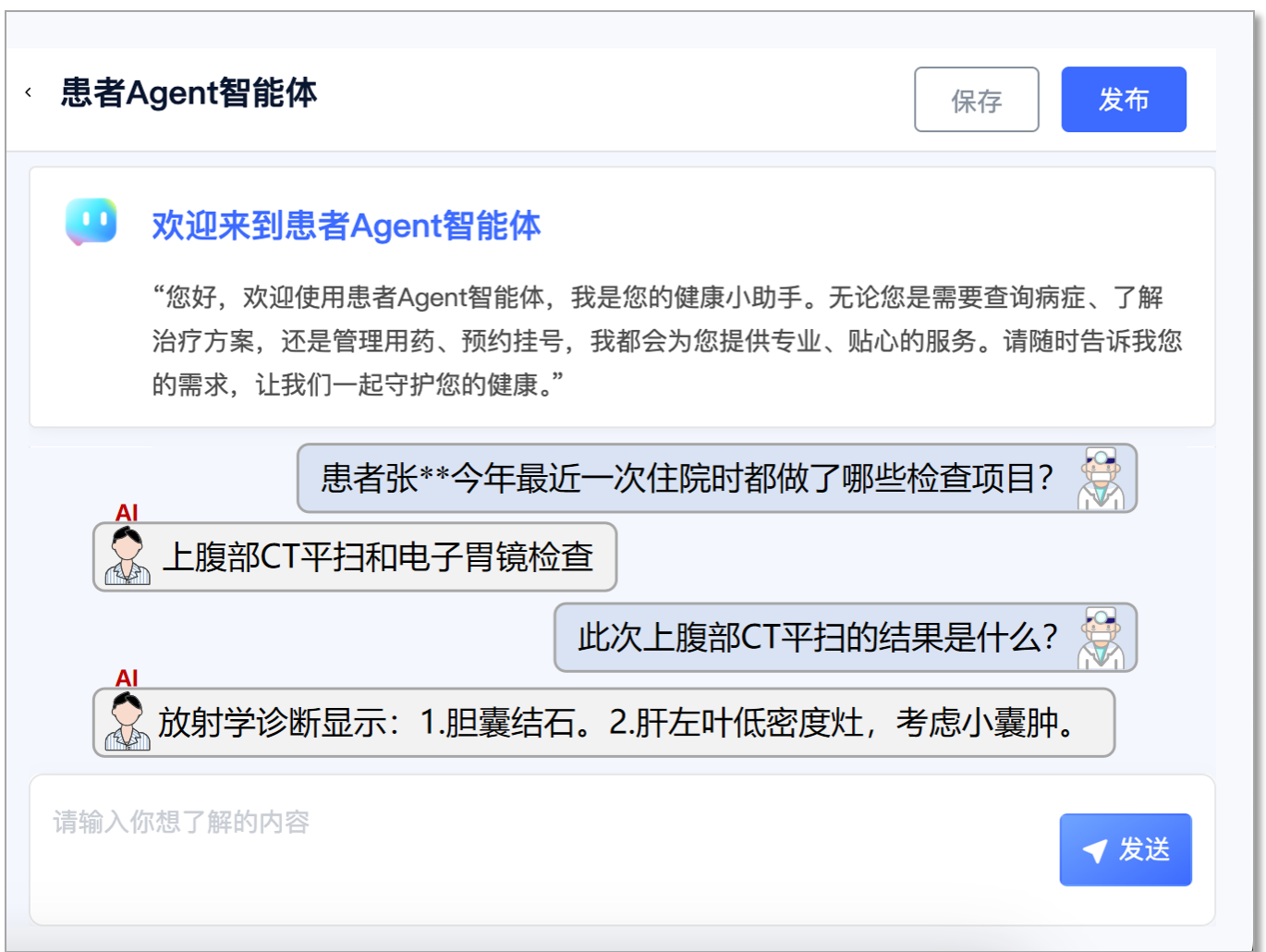 到2022年,數據治理告一段落,正巧遇上ChatGPT橫空出世,附屬三院順勢開展人工智能建設,搭建了智能體平臺和數據管理預處理平臺,在“數據湖”上搭建出“工具房”。國家衛健委在2024年11月出臺《衛生健康行業人工智能應用場景參考指引》,給出了80多條具體應用場景的建議。劉子鋒團隊結合醫院實際篩選出了若干個應用場景,患者端、醫生端、管理端、科研端均部署了數項,推出了用于醫院內部服務與管理的“三院私域GPT”、用于幫助門診醫生提升效率的“智能預問診”系統,以及用途多樣的“患者數字分身智能體”,等等。