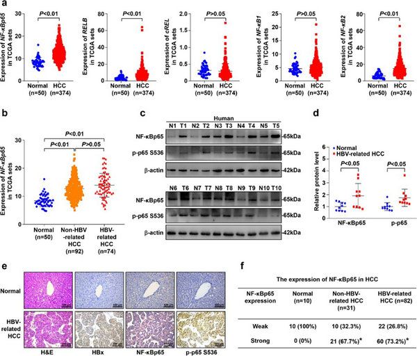 Figure 1. NF-κBp65 was upregulated in HBV-associated hepatocellular cancer.