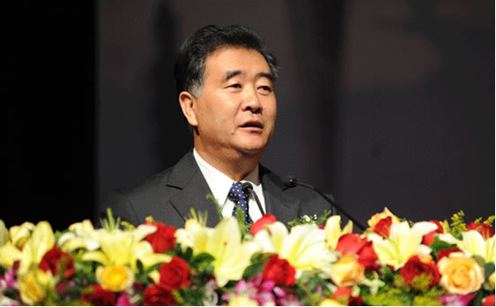 Wang Yi, Director of Taiwan Office of the Central Committee of CPC and the State Council, is dilivering a speech