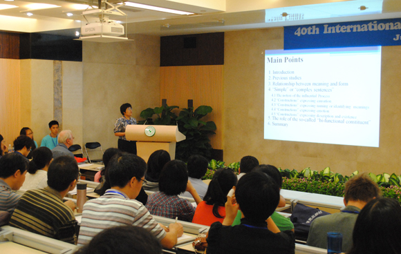 After the parallel presentations in the morning, Professor Wendy L. Bowcher delivered a plenary speech entitled “Context of Situation: Problems, Paths, and Utility”. She introduced the background of context of situation and observed the various issues that arise and which point to the advantages but also the difficulties of putting together a representative set of system networks for context of situation. According to Professor Bowcher, the issues include the concept of ‘semiotic’, the interdependency of the contextual parameters, default dependency relations, representative primary system entry points, sub-system features and environments for more delicate options, the relationship between the material and the semiotic in a situation of language use, multimodality, and the role of ‘iteration’. Professor Bowcher also discussed and illustrated some of these issues and proposed some possible ways of dealing with them through examining a variety of texts/contexts and working through some of the subsystems in the currently available contextualization system networks.