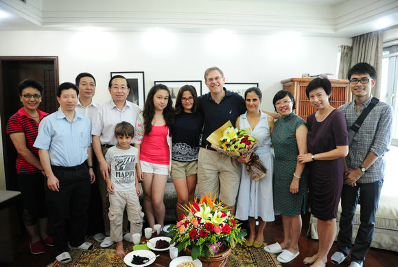 Group photo of Secretary Zheng Detao, relevant department leaders and Prof. Nathan Congdon and his family