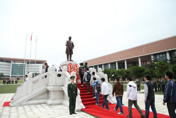 In the music played by the military band, all attendees stood up and faculty and students sang the University song. Finally all attendees paid their respects to the statue one by one in queue and the ceremony was completed successfully.