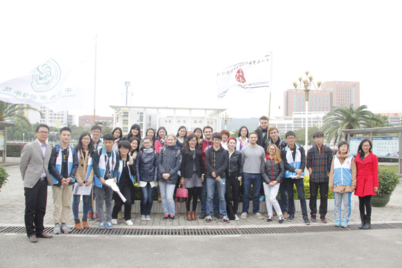 On the afternoon of December 12, 2014, the voluntary teaching program “VOLUNTARY Cultural Tour, TEACHING You & Me Together” was held in Zhuhai Experimental Middle School. It was co-organized by the International Student Association (ISA) of School of International Studies, Sun Yat-sen University and Zhuhai Experimental Middle School. The attendees included ISA tutor Ye Weiyin, foreign teacher of School of Foreign Languages Sven Albrecht, international students Santana Bugzel, Collin Schaefer, Pawel Jan Gawronski, Jonas Matthias Sassin, Daria Chepruchenko, Irina Goruleva and Leyla Al-Khamza, as well as other members and volunteers of the ISA.