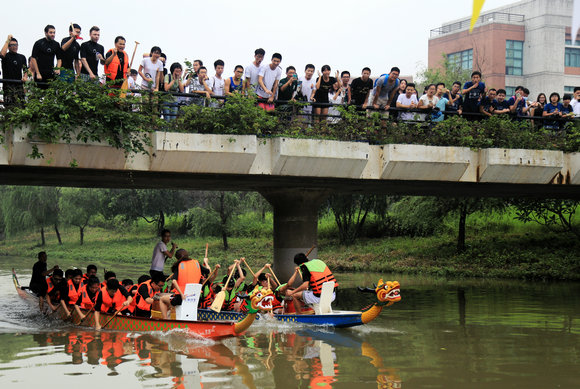 Dragon Boat Racing is a traditional sport in China. On May 23, 2015, the 1st SYSU Dragon Boat Racing was held on Guhe River in East Campus of Sun Yat-sen University. Co-organized by School of Education, Party & Administration Joint Office of East Campus and SYSU Youth Association, the racing attracted 286 participants in 22 teams from 14 schools and departments of SYSU.