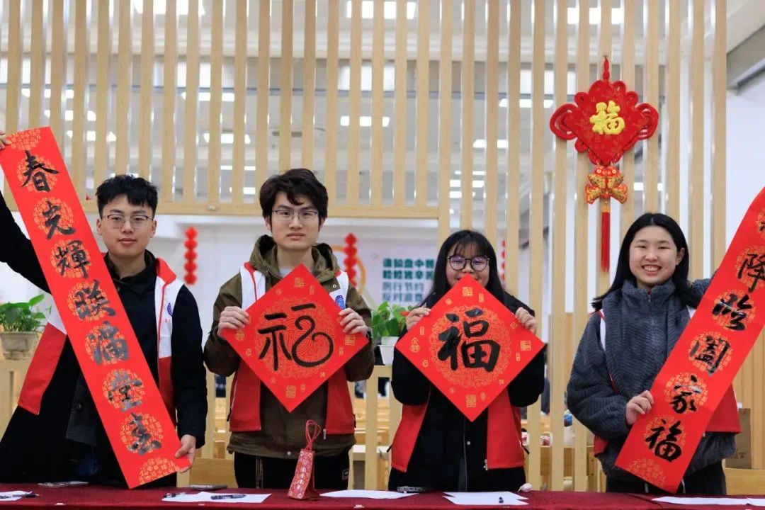 During the celebration event, students experienced traditional Spring Festival culture through activities such as writing Spring Festival couplets (chunlian), as well as writing the Chinese character fu, which means happiness and luck, on red paper.