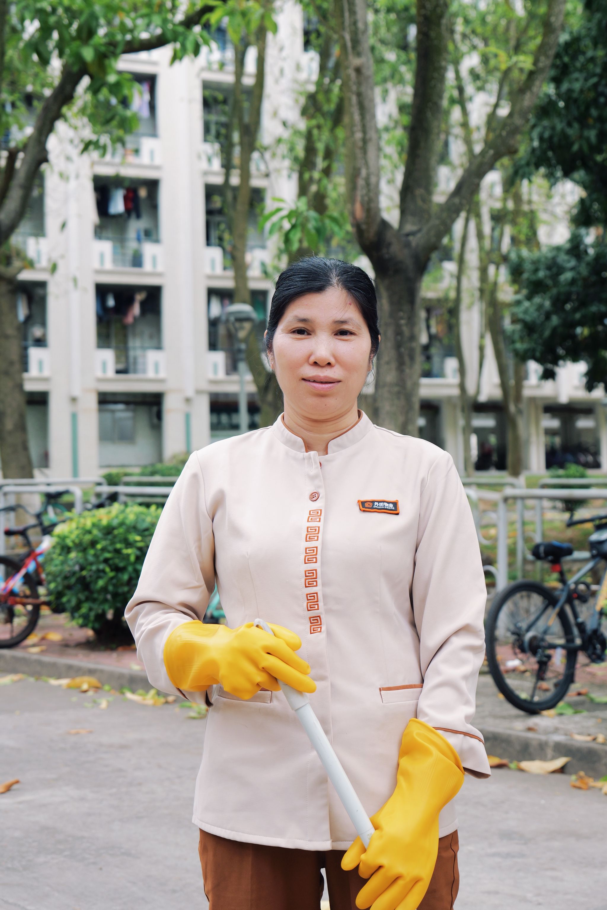 Lin Toumei has worked as a campus cleaner at SYSU for over a decade, finding happiness in seeing students study in a clean and tidy environment. Her daily tasks include routine cleaning and enhanced disinfection to maintain hygiene. She takes pride in maintaining not just cleanliness, but a healthy, welcoming space for both students and staff.