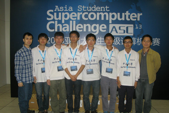 On April 19, 2013, through three-day intensive competition, the first Asia Student Supercomputer Challenge (ASC13) finally came to an end in Shanghai Jiao Tong University. Sun Yat-sun University representative team ranked fourth among ten finalists, and became the best team in the molecular dynamics application. Tsinghua University, National Tsing Hua University and Huazhong University of Science and Technology gained the top three. The top two in mainland China will participate in the ISC student cluster competition to be held in Germany in June, 2013.