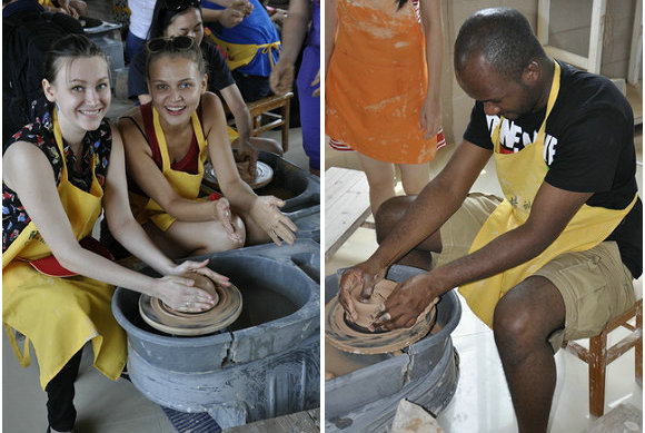 The students tried “throwing” in Jingdezhen.