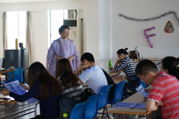 On the same day, a performance of Japanese Puppeteer Dance was held in the School of Foreign Languages. Organized by Guangzhou Center for “Face-to-face Exchanges”, the exchange event invited Okano Masayuki, a graduate student from Daito Bunka University, to present the Japanese Puppeteer Dance to junior students of the Department of Japanese. Okano gave an introduction and a wonderful performance. He also taught the students some movements and gestures in the dance.