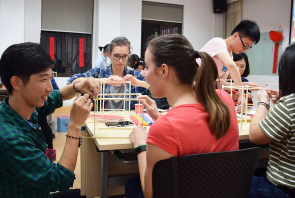In the end, the international students and the organizers took a group photo with the lanterns they made. The salon finally wrapped up in laughter. It enabled international students to learn about not only the Chinese lantern culture but also the charm of Chinese painting and Chinese calligraphy. One girl from Thailand said, "The Chinese lantern is just as beautiful as the Thai lantern that my mom taught me to make when I was young. I am going to send these pictures to my mom. She must be very happy seeing my Chinese name on the lantern".