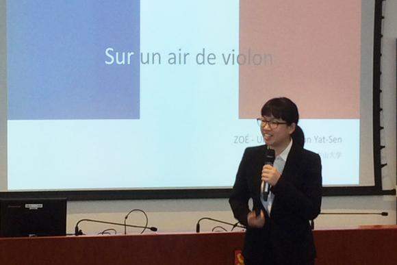On March 19, 2016, the 7th Pearl River Delta Inter-university French Speech Competition was held in the University of Hong Kong (HKU). Two students from Sun Yat-sen University (SYSU), Chen Yanyu from Department of French, School of Foreign Languages and Huang Jingya from Sino-French Institute of Nuclear Engineering and Technology were awarded first and second runner-ups respectively.