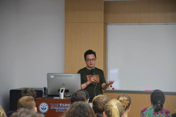 First, on behalf of SYSBS, Professor Meiji Fong warmly welcomed all the new international students at seat in his welcome remarks. Ms. Justine Xu from the Office of Curriculum and Degree Affairs and Ms. Lenore Xu from the MBA Administration Office respectively gave an informative presentation on course requirements and suggestions. Students then received an introduction provided by Ms. Cici Mou from the Office of International Affairs on campus service and urban life. Moreover, two dual-degree students from WFI shared their life experience and tips in Guangzhou. Finally, “buddies” and student delegates introduced the activities of the Buddy Club for this semester.