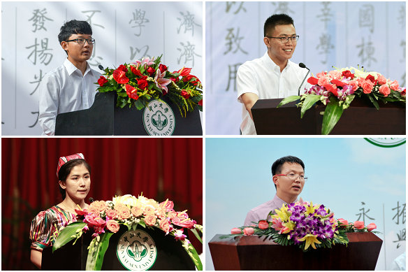 On behalf of the continuing students, Xia Yanfei, Wu Xiaolong, Aligu and Hao Bo gave a speech respectively, sharing their own experiences of study at SYSU. On behalf of the new students, Yan Yuan, Li Yihan, Hu Xiaoxiao and Zhang Yi gave a speech respectively, expressing their determination to become students who have both ability and moral integrity, able to cultivate charisma and eager to serve their country.