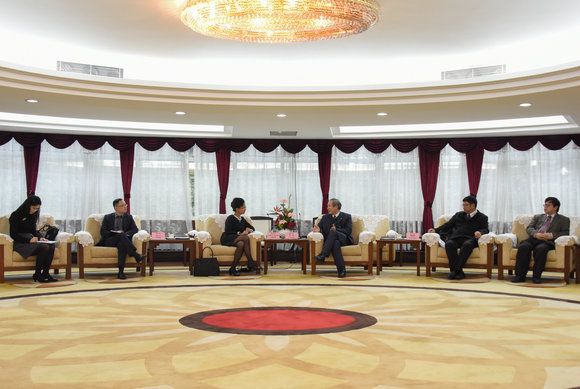 On the afternoon of January 12, 2016, a three member delegation led by Ms. Rebecca Needham, Consul General of New Zealand Consulate-General in Guangzhou, visited Sun Yat-sen University (SYSU). Prof. Luo Jun, President of SYSU, met with the guests in Zhongshan Building on South Campus. Prof. Bao Jigang, Dean of School of Tourism Management, Prof. Zhang Hui, Deputy Dean of Zhongshan School of Medicine, and Ms. Huang Ruimin, Deputy Director, Office of International Cooperation & Exchange also attended the meeting.
