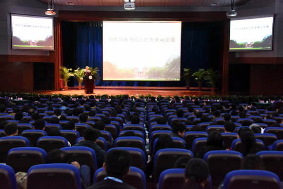 Prof. Luo Jun made a report from three aspects: the overall development planning of the University, the framework for the development of Zhuhai Campus, and the main tasks of Zhuhai Campus construction. He said that with a solid foundation for the disciplines in humanities, social sciences, natural sciences, medical sciences and engineering, SYSU has been constantly pursuing academic innovations and adopting an open system of institutional management with international vision. With the characteristics of “comprehensive, innovative and open”, SYSU has become a first-class university in the country and a renowned university in the world. In the past ten years, SYSU has maintained momentum toward rapid development and has been presented with good opportunities for development. The principal development goal of the University is to foster an academic environment where all disciplines develop distinctively yet systematically, thus allowing the University to blossom into an institution with influence and impact on a global scale. The University is striving to enter the first tier among universities nationwide, and trying to increase and even double its standing among major indicators of academic management outcomes, thereby raising the overall level of disciplinary construction and talent cultivation. The guiding principle is to adhere to the “three orientations”: oriented to academic frontiers, oriented to national major strategic needs, and oriented to national and regional economic and social development. Through the “three big constructions”: constructing big platforms, big research teams, and big projects, we will gradually break through the ceiling that restricts the University’s development. Our main tasks are improving the quality of talent cultivation and nurturing talents who have both ability and moral integrity, able to cultivate charisma and eager serve their country; building up the Guangzhou Campuses (South Campus, North Campus and East Campus), Zhuhai Campus, and Shenzhen Campus; and promoting the construction of “123”: one national-level high-end think tank, two national major scientific projects (both based in Zhuhai Campus), and three major scientific platforms.