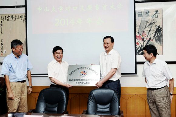 On the morning of August 7, the two universities held the 2014 annual meeting on partner assistance work. You Jun, Secretary of the CPC Committee of Jishou University; Bai Jinxiang, President of Jishou University; Xu Ningsheng, President of SYSU; Chen Chunsheng, Executive Deputy Secretary and Vice President of SYSU; Liu Lin, Dean of School of Geography and Planning of SYSU; Liu Xiaochun, Deputy Director of Institute of Chinese Intangible Cultural Heritage of SYSU; Luo Teng, Director of Human Resources Department of SYSU; and leaders of relevant departments and schools of Jishou University attended the meeting.