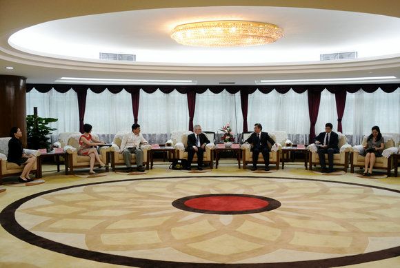 On June 23, a delegation led by Prof. William I. Brustein, Vice Provost for Global Strategies and International Affairs of Ohio State University (OSU), visited SYSU. Members of the delegation also included Jian Xiaobin, Associate Professor, The Department of East Asian Languages and Literatures, OSU, and Ms. You Chao, Director and Chief Representative, OSU China Gateway. Prof. Zhu Xiping, Vice President of SYSU, met with the guests in Zhongshan Building, accompanied by Prof. Zhou Xiaobing, Dean of School of Chinese as a Second Language (SCSL); Associate Professor Zhang Shitao, Deputy Dean of SCSL; Ms. Luo Jing, Deputy Dean of SCSL; and Ms. Xu Yao, Deputy Director of Office of International Cooperation & Exchange.
