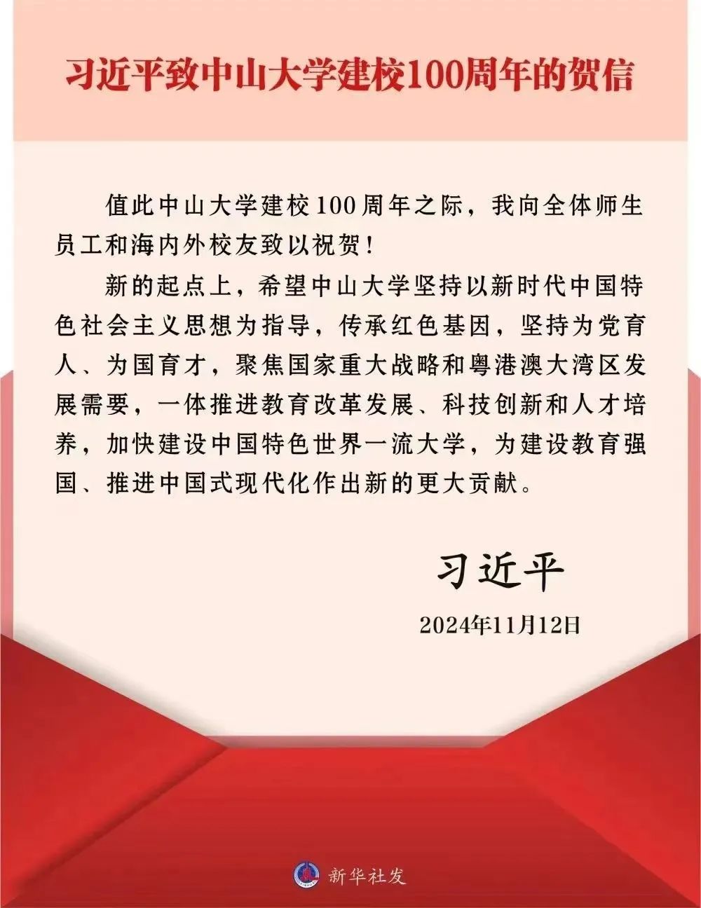 在中山大學建校100周年之際,習近平總書記親致賀信,明確要求中山大學要加快建設中國特色世界一流大學,為建設教育強國、推進中國式現代化作出新的更大貢獻。站在新的起點上,中山大學要貫徹落實好總書記重要賀信精神,牢牢把握“三重屬性”引領教育改革方向,緊緊圍繞“一體推進”優化大學治理體系,始終銘記“大學初心”培育大學治理文化,以改革添動力、增活力,加快推動學校建設中國特色世界一流大學,不負總書記的殷切期望。