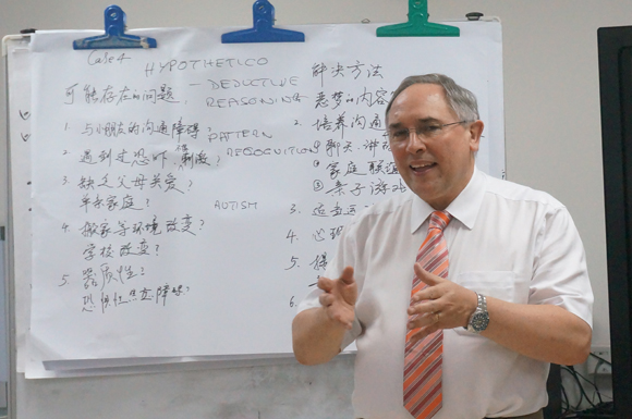 Using brain storm method, five random groups of trainees intensely discussed common clinical cases offered by Prof. Gibbs. The case study involved character analysis, information collection, diagnosis and problem solution. Then, one representative from each group presented their conclusion. Prof. Gibbs and Prof. Taylor gave their comments based on the content of the presentation.