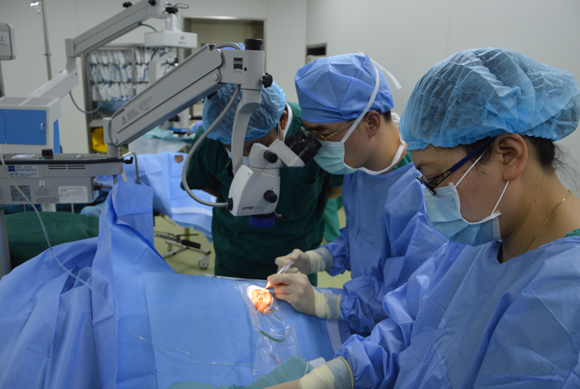 The ophthalmic medical team is performing a surgery for a Tibetan herdsman.