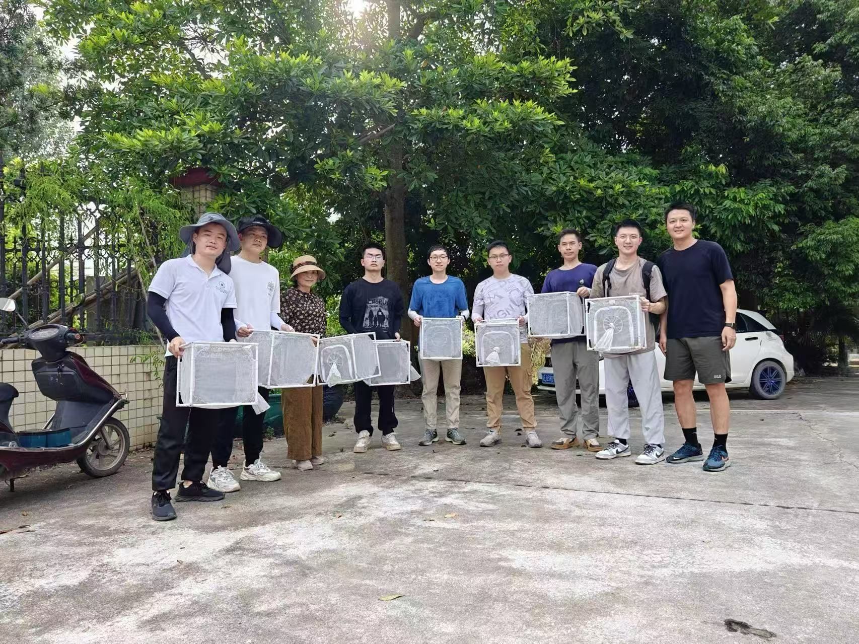 Professor Dongjing Zhang (first from the right) instructs students in conducting field mosquito monitoring.